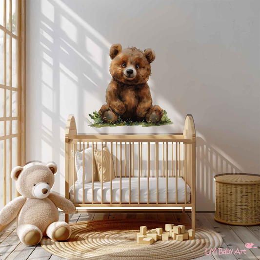 De muursticker beer is een zachte blikvanger boven het bedje, de commode of in een speelhoek.