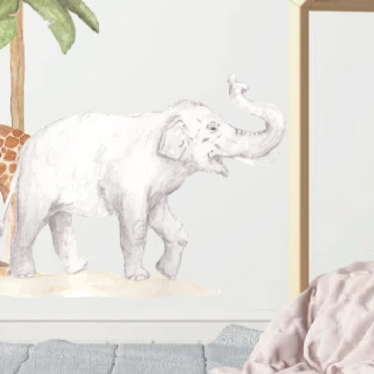 Olifant muursticker waterverfstijl | Maak een echte safari kamer