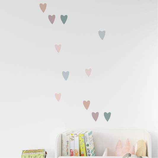 Vrolijke hartjes muurstickers | 25 hartjes stickers