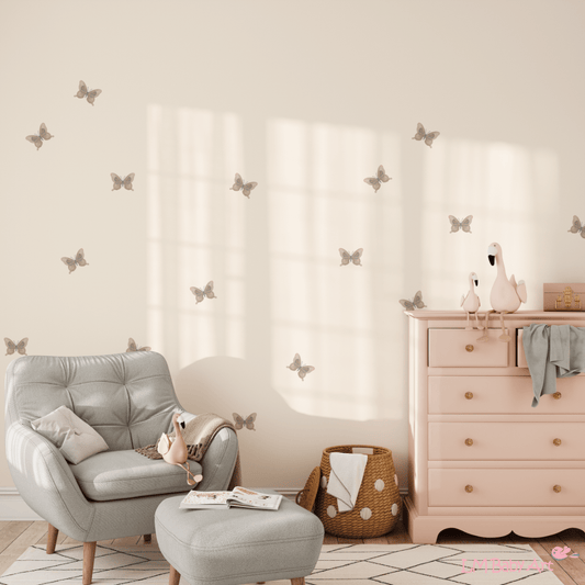 Vlinder muurstickers beige - Sunny Bloom collectie