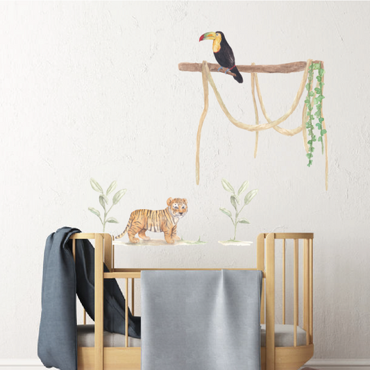 Tijger welpje muursticker | Schattige muursticker tijger welpje | 24x43cm